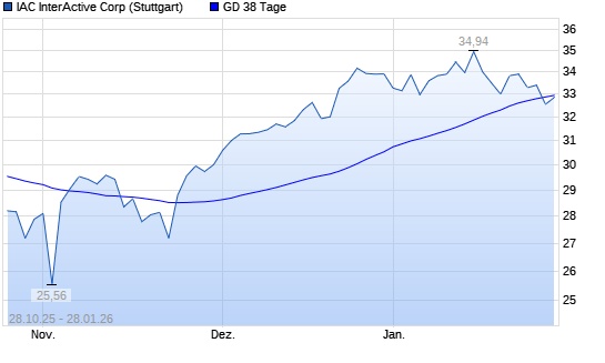 Mit dem Anstieg auf 33,51 EUR hat die IAC InterActiveCorp-Aktie am 27.01.2026 die 38-Tage-Linie nach oben gekreuzt.Die IAC InterActiveCorp-Aktie befindet sich seit dem 08.12.2025 im langfristigen ...weiterlesen