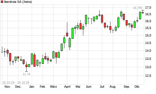 Mit dem Anstieg auf 16,71 EUR hat die Iberdrola-Aktie (ISIN ES0144580Y14) am 14.10.2025 ein neues All-Time-High erreicht und damit den Kurs vom 24.06.2025 eingestellt.Die Iberdrola-Aktie befindet ...weiterlesen