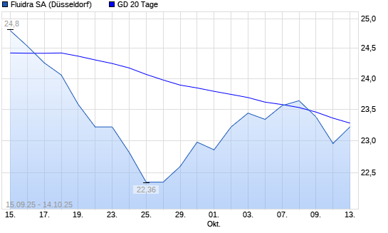 Mit dem Rücksetzer auf 23,16 EUR hat die Fluidra-Aktie am 13.10.2025 die 20-Tage-Linie nach unten gekreuzt.Die Fluidra-Aktie befindet sich seit dem 30.09.2025 im langfristigen Aufwärtstrend ...weiterlesen