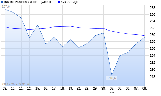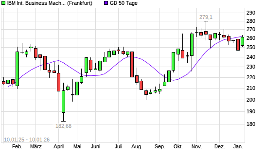 Mit dem Anstieg auf 261,60 EUR hat die IBM-Aktie am 09.01.2026 die 50-Tage-Linie nach oben gekreuzt.Die IBM-Aktie befindet sich seit dem 22.09.2025 im langfristigen Aufwärtstrend und hat in ...weiterlesen