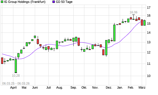 Mit dem Rücksetzer auf 15,33 EUR hat die IG GROUP HOLDINGS-Aktie am 05.03.2026 die 50-Tage-Linie nach unten gekreuzt.Die IG GROUP HOLDINGS-Aktie befindet sich seit dem 27.11.2025 ...weiterlesen