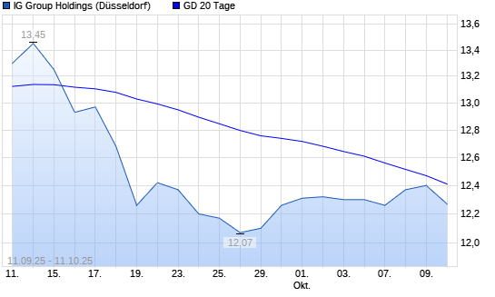 Mit dem Rücksetzer auf 12,41 EUR hat die IG GROUP HOLDINGS-Aktie am 10.10.2025 die 20-Tage-Linie nach unten gekreuzt.Die IG GROUP HOLDINGS-Aktie befindet sich seit dem 09.10.2025 im langfristigen ...weiterlesen