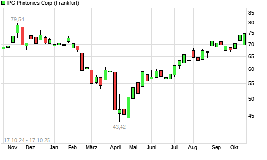 Mit dem Anstieg auf 74,90 EUR hat die IPG Photonics-Aktie (ISIN US44980X1090) am 16.10.2025 ein neues 6-Monats-Hoch erreicht und damit den Kurs vom 09.10.2025 eingestellt.Die IPG Photonics-Aktie ...weiterlesen