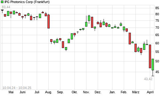 Mit dem Rücksetzer auf 43,42 EUR hat die IPG Photonics-Aktie (ISIN US44980X1090) am 09.04.2025 ein neues 10-Jahres-Tief erreicht und damit den Kurs vom 07.04.2025 eingestellt.Die IPG Photonics-Aktie ...weiterlesen