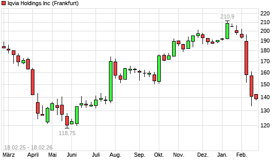 Mit dem Rücksetzer auf 138,75 EUR hat die IQVIA Holding-Aktie (ISIN US46266C1053) am 17.02.2026 ein neues 6-Monats-Tief erreicht und damit den Kurs vom 16.02.2026 ...weiterlesen