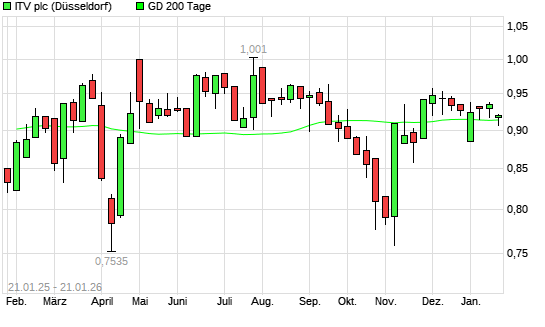 Mit dem Rücksetzer auf 0,91 EUR hat die ITV-Aktie am 20.01.2026 die 200-Tage-Linie nach unten gekreuzt.Die ITV-Aktie befand sich seit dem 14.11.2025 im langfristigen Aufwärtstrend und hat ...weiterlesen