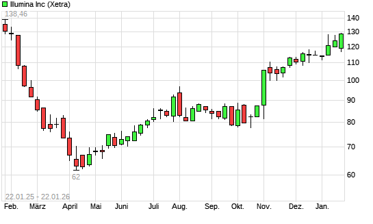 Mit dem Anstieg auf 130,00 EUR hat die Illumina-Aktie (ISIN US4523271090) am 21.01.2026 ein neues 6-Monats-Hoch erreicht und damit den Kurs vom 07.01.2026 eingestellt.Die Illumina-Aktie befindet ...weiterlesen