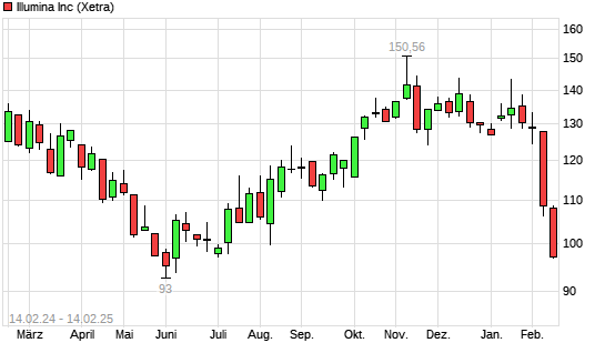 Mit dem Rücksetzer auf 96,93 EUR hat die Illumina-Aktie (ISIN US4523271090) am 13.02.2025 ein neues 6-Monats-Tief erreicht und damit den Kurs vom 11.02.2025 eingestellt.Die Illumina-Aktie ...weiterlesen