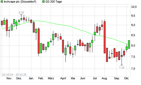 Mit dem Anstieg auf 8,22 EUR hat die Inchcape-Aktie am 09.10.2025 die 200-Tage-Linie nach oben gekreuzt.Die Inchcape-Aktie befand sich seit dem 07.10.2025 im langfristigen Abwärtstrend und hat ...weiterlesen