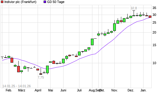 Mit dem Rücksetzer auf 28,20 EUR hat die Indivior-Aktie am 13.01.2026 die 50-Tage-Linie nach unten gekreuzt.Die Indivior-Aktie befindet sich seit dem 28.04.2025 im langfristigen Aufwärtstrend ...weiterlesen