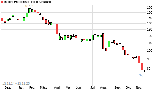 Mit dem Rücksetzer auf 76,90 EUR hat die Insight Enterprises-Aktie (ISIN US45765U1034) am 12.11.2025 ein neues 3-Jahres-Tief erreicht und damit den Kurs vom 11.11.2025 ...weiterlesen