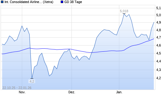 Mit dem Anstieg auf 4,73 EUR hat die International Airlines Group-Aktie am 21.01.2026 die 38-Tage-Linie nach oben gekreuzt.Die International Airlines Group-Aktie befindet sich seit dem 24.04.2025 ...weiterlesen