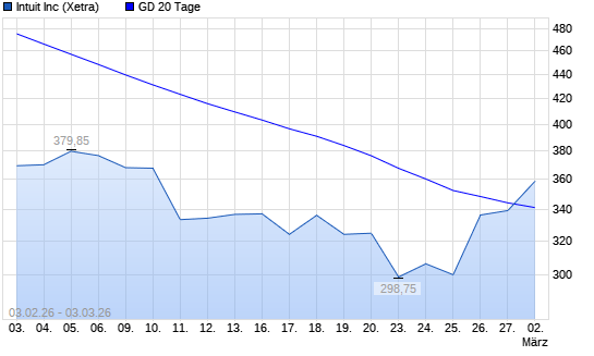 Mit dem Anstieg auf 353,50 EUR hat die Intuit-Aktie am 02.03.2026 die 20-Tage-Linie nach oben gekreuzt.Die Intuit-Aktie befindet sich seit dem 22.08.2025 im langfristigen Abwärtstrend ...weiterlesen