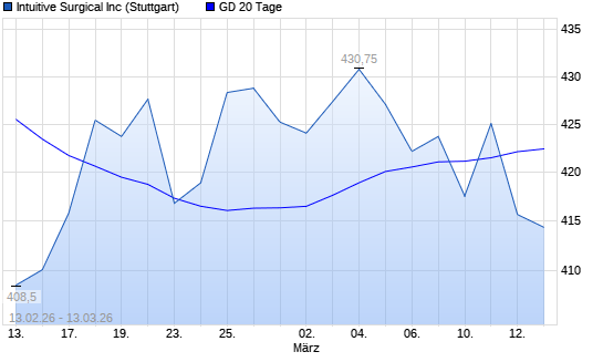 Mit dem Rücksetzer auf 414,30 EUR hat die Intuitive Surgical-Aktie am 12.03.2026 die 20-Tage-Linie nach unten gekreuzt.Die Intuitive Surgical-Aktie befindet sich seit dem ...weiterlesen