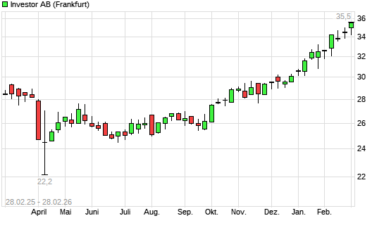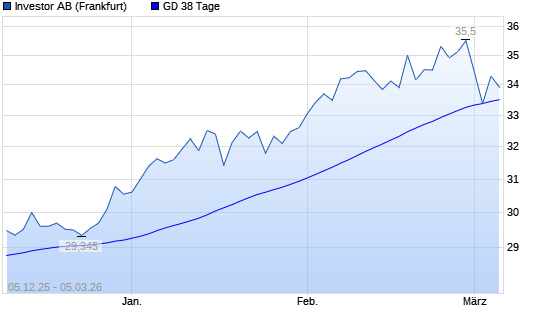 Mit dem Anstieg auf 34,29 EUR hat die Investor B-Aktie am 04.03.2026 die 38-Tage-Linie nach oben gekreuzt.Die Investor B-Aktie befindet sich seit dem 30.09.2025 im ...weiterlesen