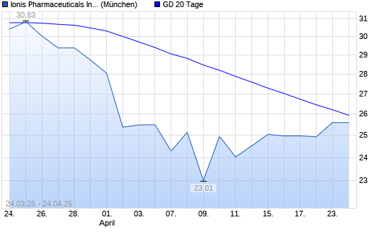 Mit dem Anstieg auf 25,61 EUR hat die Ionis Pharmaceuticals-Aktie am 23.04.2025 die 20-Tage-Linie nach oben gekreuzt.Die Ionis Pharmaceuticals-Aktie befindet sich seit dem 10.09.2024 im langfristigen ...weiterlesen
