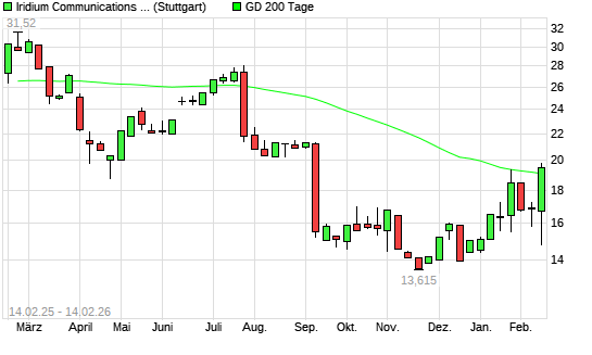 Mit dem Anstieg auf 19,34 EUR hat die Iridium Communications-Aktie am 13.02.2026 die 200-Tage-Linie nach oben gekreuzt.Die Iridium Communications-Aktie befand sich seit dem 24.07.2025 im langfristigen ...weiterlesen