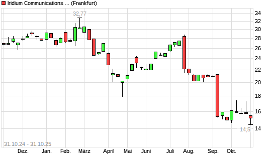 Mit dem Rücksetzer auf 14,50 EUR hat die Iridium Communications-Aktie (ISIN US46269C1027) am 30.10.2025 ein neues 5-Jahres-Tief erreicht und damit den Kurs vom 30.09.2025 eingestellt.Die ...weiterlesen