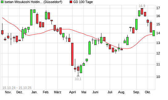 Mit dem Anstieg auf 14,50 EUR hat die Isetan Mitsukoshi Holdings-Aktie am 14.10.2025 die 100-Tage-Linie nach oben gekreuzt.Die Isetan Mitsukoshi Holdings-Aktie befindet sich seit dem 14.08.2025 ...weiterlesen