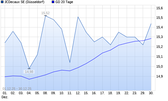 Mit dem Anstieg auf 15,96 EUR hat die JCDecaux-Aktie (ISIN FR0000077919) am 09.01.2026 ein neues 6-Monats-Hoch erreicht und damit den Kurs vom 08.01.2026 eingestellt.Die JCDecaux-Aktie befindet ...weiterlesen