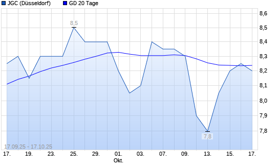 Mit dem Anstieg auf 8,30 EUR hat die JGC-Aktie am 16.10.2025 die 20-Tage-Linie nach oben gekreuzt.Die JGC-Aktie befindet sich seit dem 23.07.2025 im langfristigen Aufwärtstrend und hat in diesem ...weiterlesen