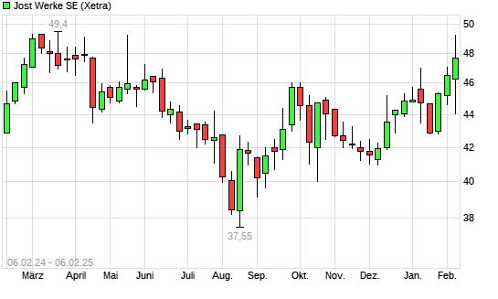 Mit dem Anstieg auf 48,40 EUR hat die JOST Werke-Aktie (ISIN DE000JST4000) am 05.02.2025 ein neues 6-Monats-Hoch erreicht und damit den Kurs vom 04.02.2025 eingestellt.Die JOST Werke-Aktie befindet ...weiterlesen