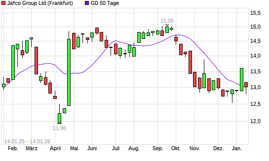 Mit dem Rücksetzer auf 12,91 EUR hat die Jafco-Aktie am 13.01.2026 die 50-Tage-Linie nach unten gekreuzt.Die Jafco-Aktie befindet sich seit dem 22.10.2025 im langfristigen Abwärtstrend ...weiterlesen