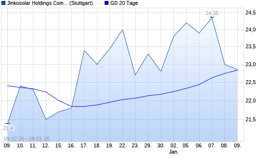 Mit dem Rücksetzer auf 23,05 EUR hat die Jinkosolar-Aktie am 08.01.2026 die 20-Tage-Linie nach unten gekreuzt.Die Jinkosolar-Aktie befindet sich seit dem 27.10.2025 im langfristigen Aufwärtstrend ...weiterlesen