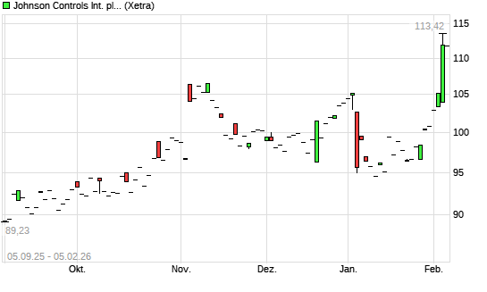 Mit dem Anstieg auf 115,92 EUR hat die Johnson Controls International-Aktie (ISIN IE00BY7QL619) am 06.02.2026 ein neues All-Time-High erreicht und damit den Kurs vom 05.02.2026 eingestellt.Die ...weiterlesen