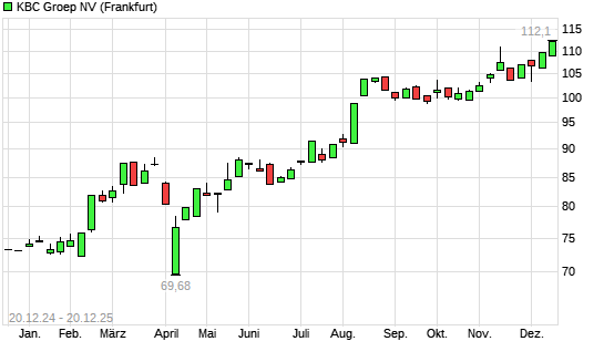 Mit dem Anstieg auf 112,10 EUR hat die KBC Groep-Aktie (ISIN BE0003565737) am 19.12.2025 ein neues All-Time-High erreicht und damit den Kurs vom 18.12.2025 eingestellt.Die KBC Groep-Aktie befindet ...weiterlesen