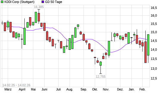 Mit dem Anstieg auf 14,79 EUR hat die KDDI-Aktie am 13.02.2026 die 50-Tage-Linie nach oben gekreuzt.Die KDDI-Aktie befindet sich seit dem 12.02.2026 im langfristigen Aufwärtstrend und hat in ...weiterlesen