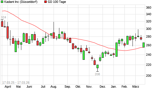 Mit dem Rücksetzer auf 256,00 EUR hat die Kadant-Aktie am 16.03.2026 die 100-Tage-Linie nach unten gekreuzt.Die Kadant-Aktie befindet sich seit dem 13.03.2026 im ...weiterlesen
