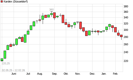 Mit dem Rücksetzer auf 272,50 EUR hat die Kardex-Aktie (ISIN CH0100837282) am 11.02.2026 ein neues 6-Monats-Tief erreicht und damit den Kurs vom 10.02.2026 ...weiterlesen