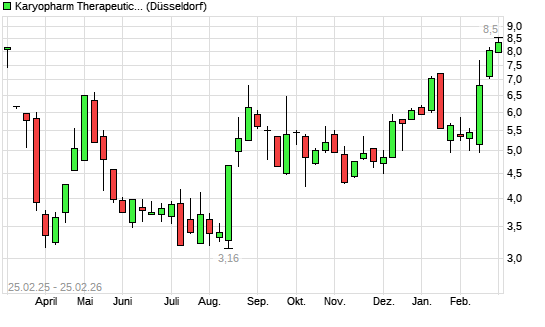 Mit dem Anstieg auf 8,40 EUR hat die Karyopharm Therapeutics-Aktie (ISIN US48576U2050) am 24.02.2026 ein neues 12-Monats-Hoch erreicht und damit den Kurs vom 24.02.2025 ...weiterlesen