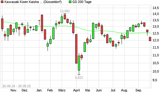 Mit dem Rücksetzer auf 12,24 EUR hat die Kawasaki Kisen Kaisha-Aktie am 29.09.2025 die 200-Tage-Linie nach unten gekreuzt.Die Kawasaki Kisen Kaisha-Aktie befand sich seit dem 26.09.2025 ...weiterlesen