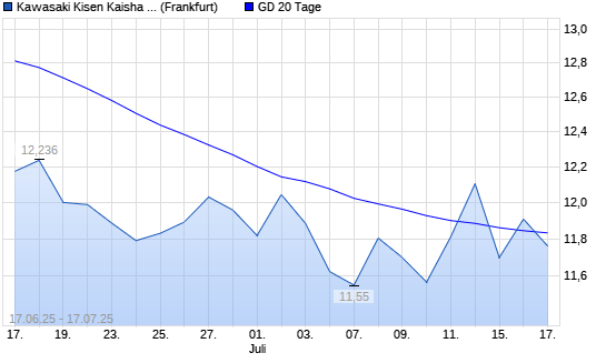 Mit dem Anstieg auf 11,91 EUR hat die Kawasaki Kisen Kaisha-Aktie am 16.07.2025 die 20-Tage-Linie nach oben gekreuzt.Die Kawasaki Kisen Kaisha-Aktie befindet sich seit dem 05.06.2025 im langfristigen ...weiterlesen