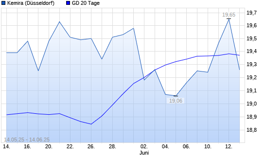 Mit dem Rücksetzer auf 19,20 EUR hat die Kemira-Aktie am 13.06.2025 die 20-Tage-Linie nach unten gekreuzt.Die Kemira-Aktie befindet sich seit dem 25.03.2025 im langfristigen Abwärtstrend ...weiterlesen