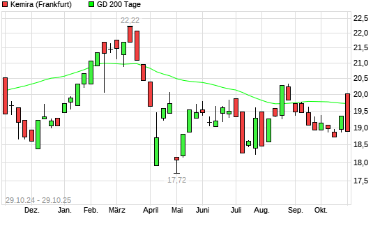 Mit dem Rücksetzer auf 19,14 EUR hat die Kemira-Aktie am 28.10.2025 die 200-Tage-Linie nach unten gekreuzt.Die Kemira-Aktie befand sich seit dem 27.10.2025 im ...weiterlesen