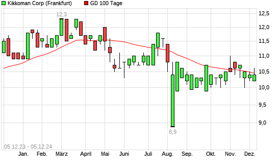 Mit dem Anstieg auf 10,60 EUR hat die Kikkoman-Aktie am 04.12.2024 die 100-Tage-Linie nach oben gekreuzt.Die Kikkoman-Aktie befindet sich seit dem 31.10.2024 im langfristigen Abwärtstrend und ...weiterlesen