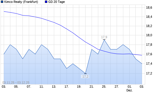 Mit dem Rücksetzer auf 17,50 EUR hat die Kimco Realty-Aktie am 02.12.2025 die 20-Tage-Linie nach unten gekreuzt.Die Kimco Realty-Aktie befindet sich seit dem 28.10.2025 im langfristigen ...weiterlesen
