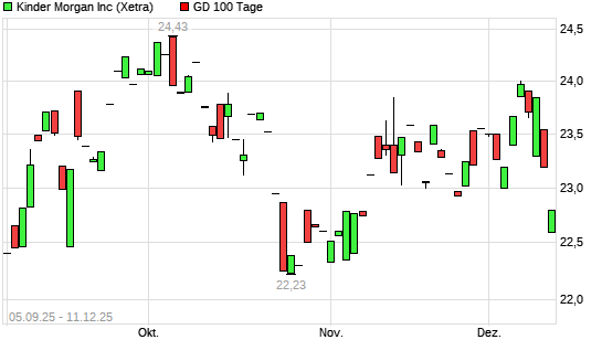 Mit dem Rücksetzer auf 22,71 EUR hat die Kinder Morgan-Aktie am 10.12.2025 die 100-Tage-Linie nach unten gekreuzt.Die Kinder Morgan-Aktie befindet sich seit dem 08.12.2025 im langfristigen ...weiterlesen