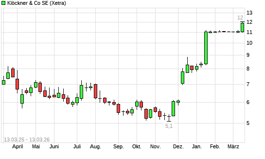 Mit dem Anstieg auf 11,92 EUR hat die Klöckner-Aktie (ISIN DE000KC01000) am 12.03.2026 ein neues 3-Jahres-Hoch erreicht und damit den Kurs vom 11.03.2026 eingestellt.Die ...weiterlesen