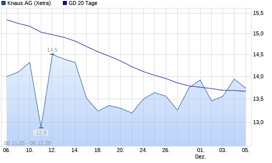 Mit dem Anstieg auf 13,86 EUR hat die Knaus Tabbert-Aktie am 05.12.2025 die 20-Tage-Linie nach oben gekreuzt.Die Knaus Tabbert-Aktie befindet sich seit dem 18.11.2025 im langfristigen Abwärtstrend ...weiterlesen