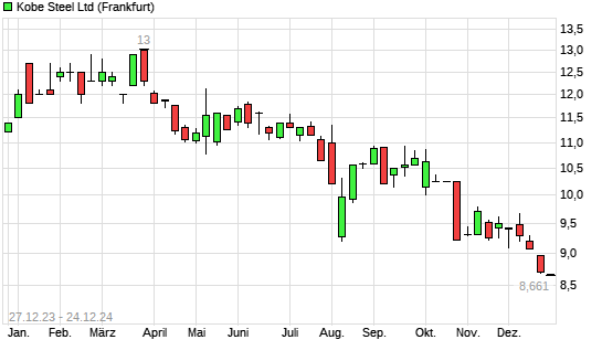 Mit dem Rücksetzer auf 8,66 EUR hat die Kobe Steel-Aktie (ISIN JP3289800009) am 23.12.2024 ein neues 12-Monats-Tief erreicht und damit den Kurs vom 19.12.2024 eingestellt.Die Kobe Steel-Aktie ...weiterlesen