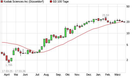 Mit dem Rücksetzer auf 20,52 EUR hat die Kodiak Sciences-Aktie am 16.03.2026 die 100-Tage-Linie nach unten gekreuzt.Die Kodiak Sciences-Aktie befindet sich seit dem 23.07.2025 ...weiterlesen