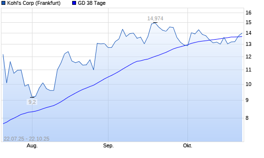 Mit dem Anstieg auf 13,75 EUR hat die Kohl's-Aktie am 21.10.2025 die 38-Tage-Linie nach oben gekreuzt.Die Kohl's-Aktie befindet sich seit dem 12.08.2025 im langfristigen Aufwärtstrend und hat ...weiterlesen