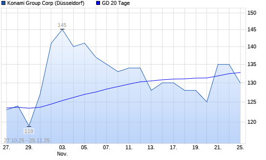Mit dem Anstieg auf 136,00 EUR hat die Konami-Aktie am 24.11.2025 die 20-Tage-Linie nach oben gekreuzt.Die Konami-Aktie befindet sich seit dem 05.01.2024 im langfristigen Aufwärtstrend und hat ...weiterlesen