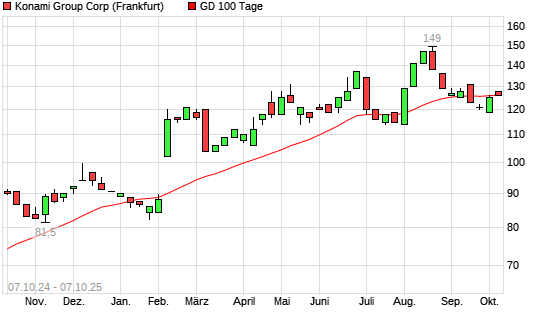 Mit dem Anstieg auf 128,00 EUR hat die Konami-Aktie am 06.10.2025 die 100-Tage-Linie nach oben gekreuzt.Die Konami-Aktie befindet sich seit dem 05.01.2024 im langfristigen Aufwärtstrend und ...weiterlesen