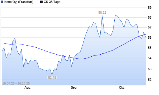 Mit dem Anstieg auf 56,52 EUR hat die Kone-Aktie am 15.10.2025 die 38-Tage-Linie nach oben gekreuzt.Die Kone-Aktie befindet sich seit dem 14.04.2025 im langfristigen Aufwärtstrend und hat in ...weiterlesen