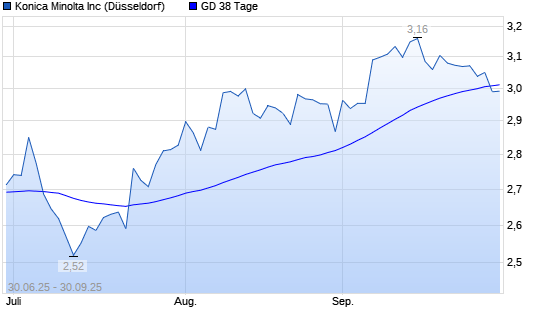 Mit dem Rücksetzer auf 2,99 EUR hat die Konica Minolta-Aktie am 29.09.2025 die 38-Tage-Linie nach unten gekreuzt.Die Konica Minolta-Aktie befindet sich seit dem 17.09.2025 im langfristigen ...weiterlesen